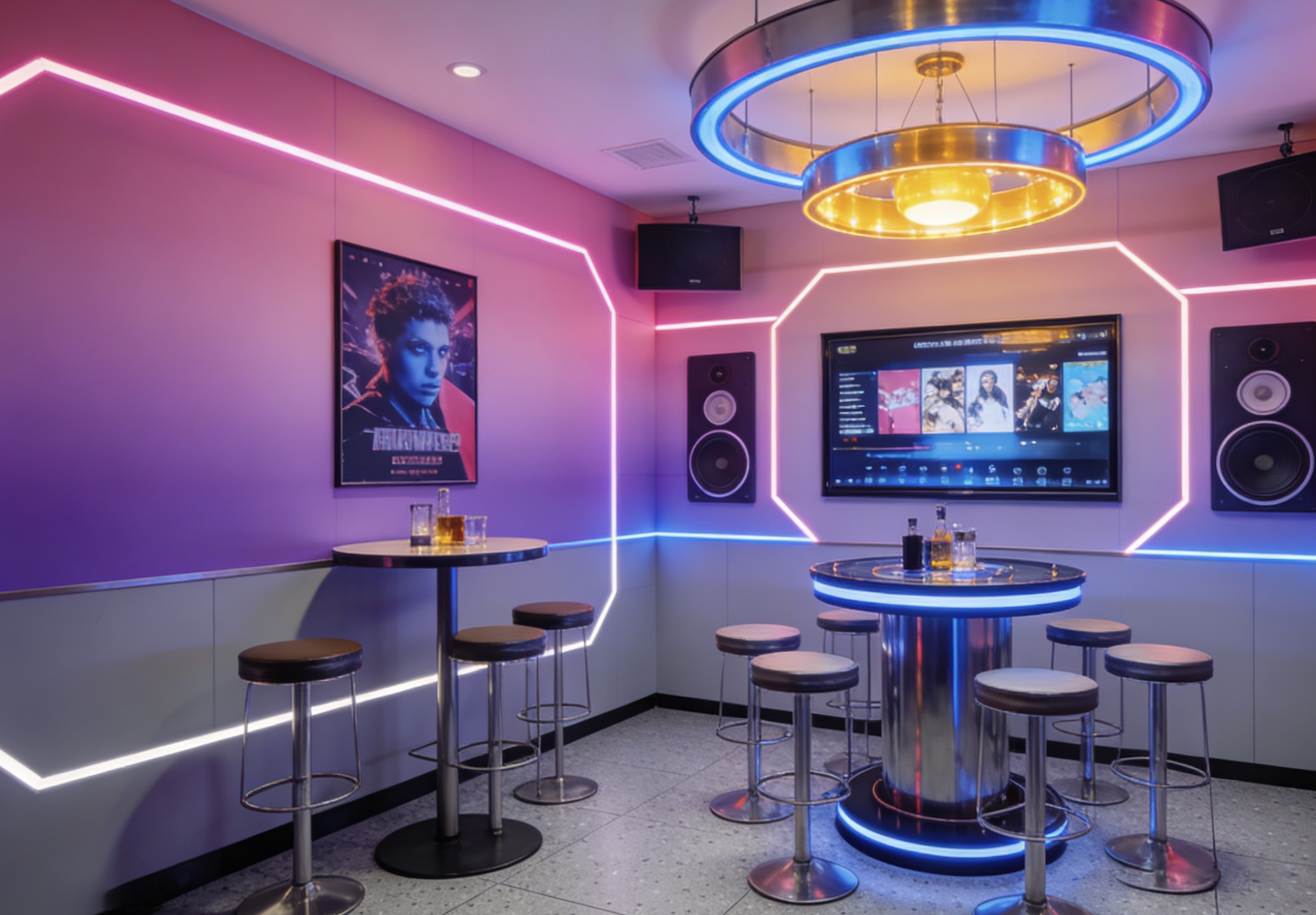 团队复盘后发现,周边 1 公里内办公人口密度高,白领下班后和周末小聚需求明显,但缺少不需要大面积重装修的轻娱乐空间。最终保留原有上下水和部分隔墙基础,把空间切成 4 间隔音包厢,主打扫码即用、下班即唱的小型无人 KTV。