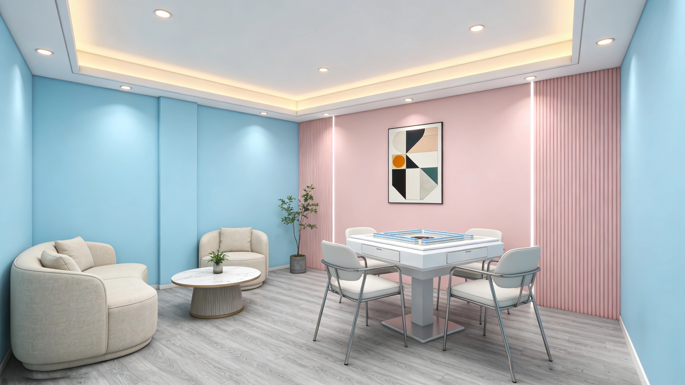 团队调研后发现,周边 1.5 公里内成熟社区密集,居民晚上和周末的熟人娱乐需求稳定,而且停车方便、噪音相对可控,更适合做包间型棋牌室。最终把空间切成 8 间包厢,保留前厅做茶水和等候区。